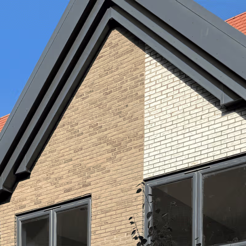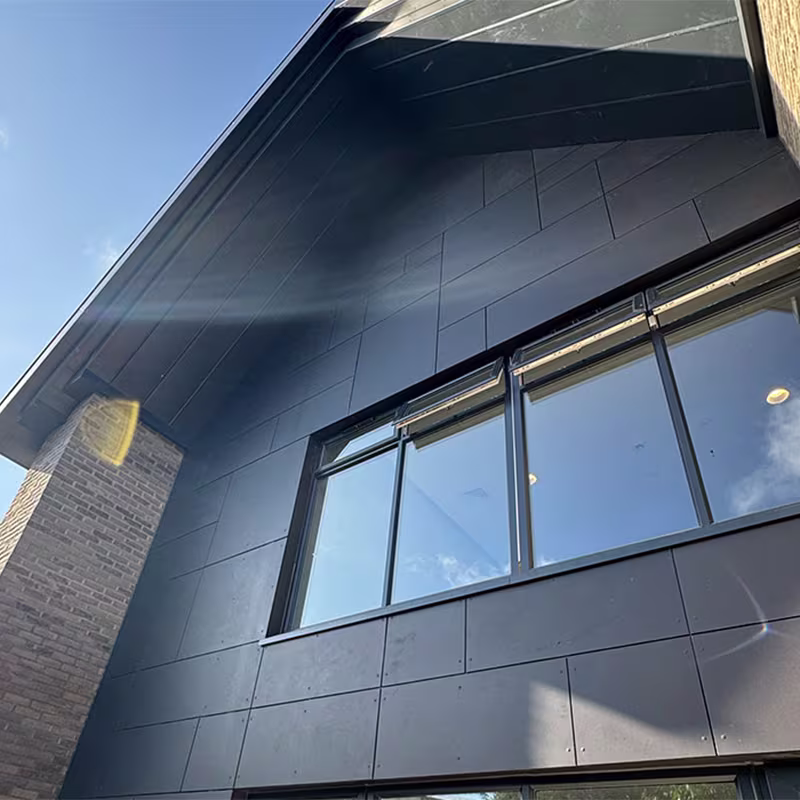 The façade system combined Equitone Natura panels with brick elements to create a modern yet welcoming aesthetic while improving energy efficiency.
